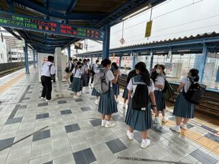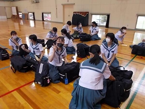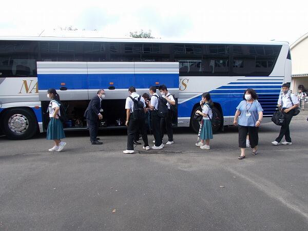 いよいよ修学旅行当日になりました。コロナ感染症の影響で昨年度から延期になっていましたが、無事に当日を迎えることができました。生徒も大変うれしそうです。