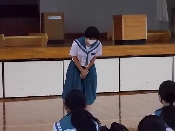 全員が揃い、代表生徒がお礼の言葉を述べました。