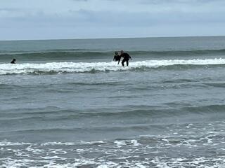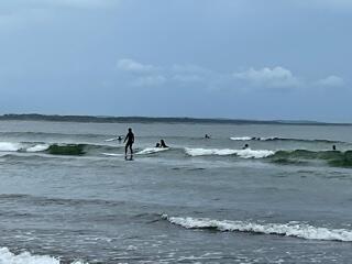 あいにくの曇り空ですが、サーフィンに夢中です。