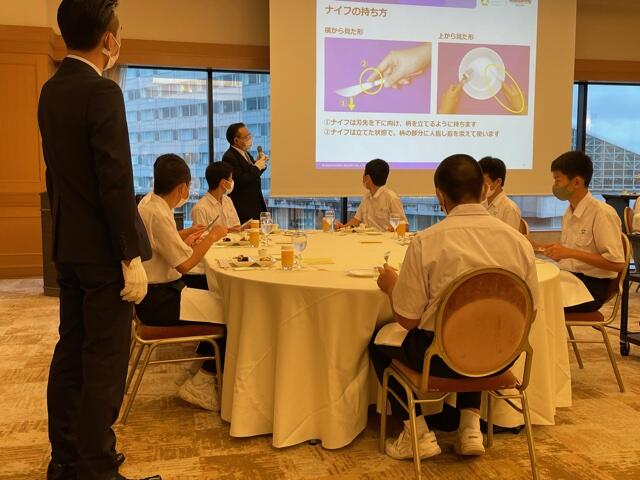 修学旅行初日の最終プログラムは、テーブルマナー講習でした。