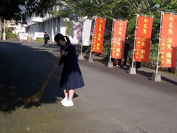 これからも、朝のボランティア活動で「心をみはく」生徒が増えますように…。