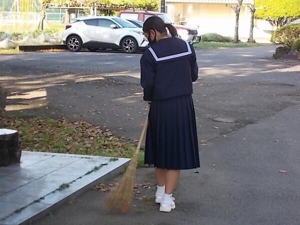 毎朝校門周辺の清掃を中心に行っている中学生の朝のボランティア活動。
