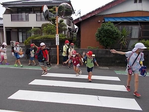 横断歩道の渡り方を中心に学習しました。「一列で」「手を高く上げて」安全に渡れるよう、今後も継続的に指導していきます。