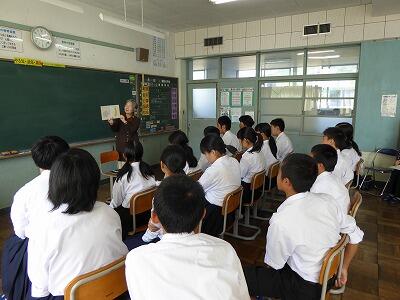 10月21日(水)、木城えほんの郷から12名の方々に来ていただき、小学生と中学1・2年生に「読み聞かせ」をしていただきました。