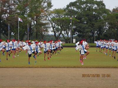 10月30日(金)、西都市内の小学6年生全員が西都原運動公園陸上競技場に集まって、陸上記録会が行われました。