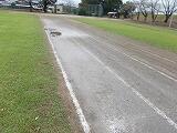 1時間目は、運動場の整備でした。刈った草を集めたり、競技に必要なラインを描いたりしました。また、熱中症対策のために、発電機を3台準備し、それに、業務用の大きな扇風機を全部で11台つなげ、児童生徒に、できるだけたくさんの風が当たるようにしました。また、手洗い場の蛇口にミストシャワーを取り付け、常時、ミストを出しました。