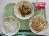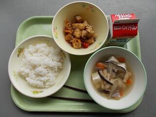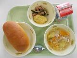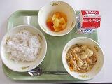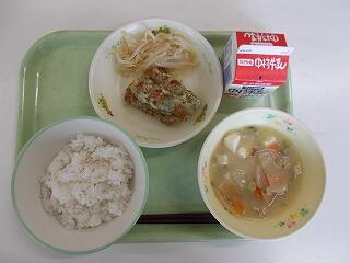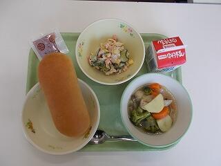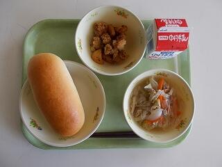 今日の献立は「ミルクパン 千切り野菜のスープ 鶏肉とじゃがいものレモン風味揚げ」でした。