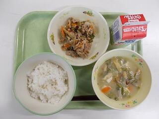 本日の献立は、麦ごはん、キムチトックスープ、チンジャオロースでした。今日の給食もおいしかったです。