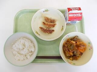 今日の献立は「麦ごはん 酢豚 ぎょうざ」でした。