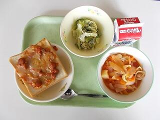 今日の献立は、「ピザトースト ミネストローネ イタリアンサラダ」でした。