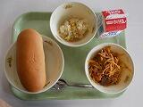本日の献立は、ミニ黒糖パン、スパゲティミートソース、コールスローサラダです。