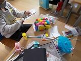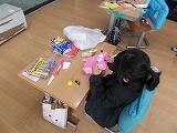 2月8日、小学部1年生の図画工作「はこでつくったよ」の授業の様子です。みんな真剣に、自分の好きな動物、ドラゴン等をお菓子の空き箱、トイレットぺーパーの芯、色紙等をつかって作っていました。とても上手なのでびっくりしました。色の組み合わせが、たいへん美しく、センスあふれる作品ばかりでした。先日の2年生の授業の絵本もそうですが、子どもの独創的で自由な発想に、無限の可能性を感じずにはいられません。