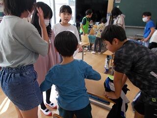 8:30に運動場で交通安全に関する全体指導を行い、8:50に出発しました。先頭は小学部5年生でした。10:00ごろ到着し、お別れ集会が行われました。お別れ集会では、中学生の進行で、〇✕ゲーム、大きな輪、長縄飛び大会が行われ、どれも盛り上がりました。大きな輪では、小学部、中学部混合の異学年で、楽しくコミュニケーションを図ることができました。長縄とびでは、中学生の記録が思ったよりも伸びなかったのですが、各学年の団結力を垣間見ることのできる歓喜あふれる大会となりました。
