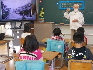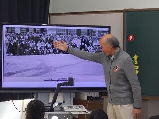 小学部2・3年生が、地域の方から「昔の三納」について話を聞きました。三納小学校や町の写真を見たり、町の様子を聞いたりして、今とはずいぶん違う三納の町の様子にびっくりしていました。三納地区に、ホテルやパチンコ屋さん、映画館などがあり、にぎわっていたそうです。町探検をした2年生は「ぜんぜんちがう~」と感想を漏らしていました。
