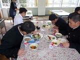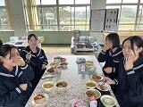 2月20日、給食が三納中リクエスト献立の日でした。リクエスト献立とは、西都市内の中学3年生にどのような給食が食べたいかリクエストを取り、それを基に決められた献立のことです。1か月に1回実施されています。中学3年生にだけアンケートを行っています。