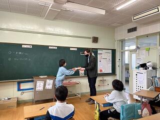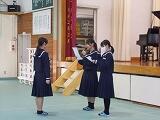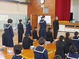 修了式の後は、学部別集会があり、小学部、中学部に分かれて、春休みの過ごし方、学習面、保健面等について、担当からの話がありました。このはなマラソンと英語検定試験の表彰も行われました。