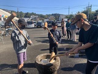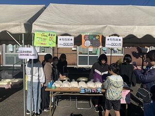 昨年度までは、餅つきをさせていただき、餅をもらったり、ピザづくりをさせてもらったりと「もらう」活動だけでしたが、今年は、田植えや稲刈りをした「もち米」を販売したり、餅や赤飯の販売を手伝ったりとより主体的な取り組みとなりました。