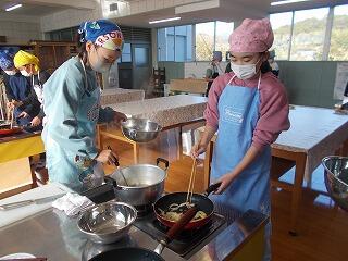 本校は、少人数なので調理実習は、一人一人がじっくり取り組んでも時間に余裕があります。