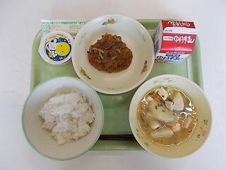 今日の献立は「麦ごはん けんちん汁 そぼろ丼」でした。