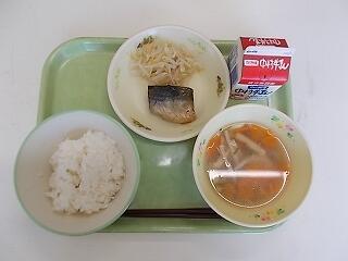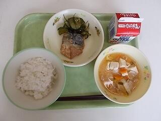 今日の献立は「白ごはん 米粉の団子汁 さばのみそ煮 ゆでもやし」でした。