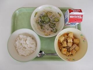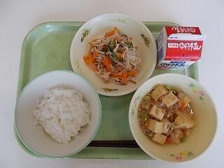 今日の献立は「麦ごはん 麻婆厚揚げ 春雨の和え物」でした。