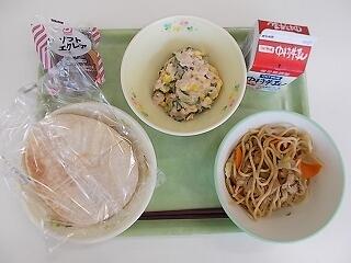 今日の献立は「ピタパン 焼きそば ツナサラダ ソフトエクレア」でした。