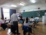 ALTの先生との初授業でした。6年生の授業では、果物や野菜のMR画像を使って「What's this?」と問いかけられていました。MR画像で見る果物や野菜は、分かるようで難しく、子どもたちは首をかしげながらも意欲的に発表していました。イーサン先生と授業を楽しんでいました。