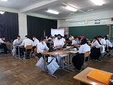 6校時には、実技試験が行われました。全校生活委員長の話の後、実際に旧校舎に作られた道路を自転車で走行し、実技試験を行いました。皆真剣に取り組んでいました。