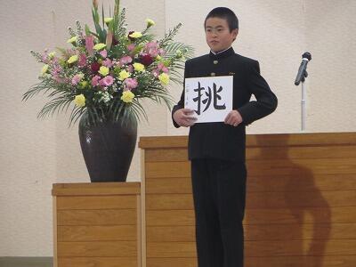 2月7日(日)に中学校では「立志の集い」を行いました。集いでは、一人一人が決意を表す漢字一文字を書いた色紙をもって決意表明を行い、2年生代表生徒が誓いの言葉を述べました。