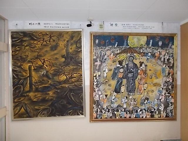 三納小中学校の玄関には、本校を卒業されたお二人の画家の絵画が飾られています。