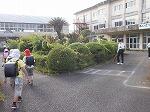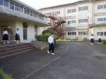 今朝の登校の様子です。中学生が毎朝落ち葉掃きをするのがすばらしいですね。