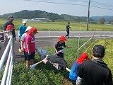 JA三納青年部の皆さんの協力のもと、学習田で行いました。