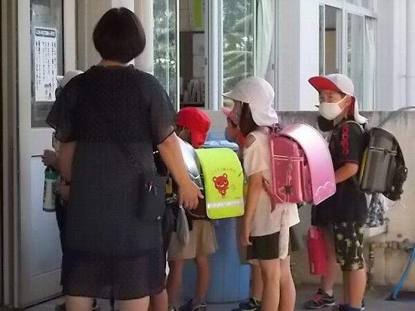 今朝の登校、ボランティアの様子です。植物もだいぶ大きく育ちました。