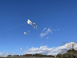 で自分で作った凧を揚げました。