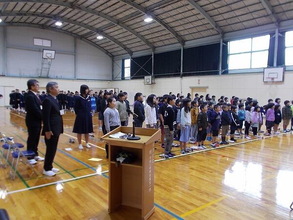 始業式では代表児童生徒2名が3学期の目標を発表しました。特に中学3年生は残り76日(登校する日が48日)ということで、一意日一日を大切に過ごしていきたいと決意を述べました。最後は小中学校それぞれの校歌を元気よく歌いました。