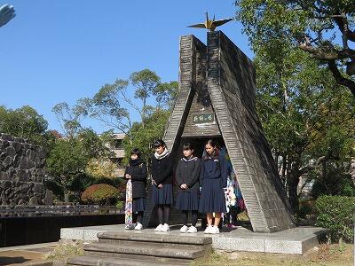 1日目は、長崎の平和公園・原爆資料館に行きました。原爆の悲惨さを目の当たりにし、平和の尊さについて一人一人が真剣に考えていました。その後、新門司港からフェリーに乗りました。就航3日目ということで、船内はどこもかしこも新しくびっくりしました。