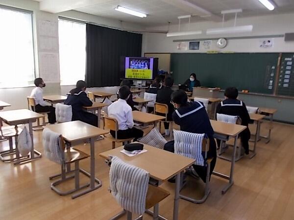 本日5校時目は給食感謝集会(各教室で実施。映像と放送で対応)でした。児童生徒の保体委員を中心に計画・準備してきました。給食センター職員の紹介や給食ができるまでの過程を各教室で映像を通して勉強しました。以下はそのときの様子です。