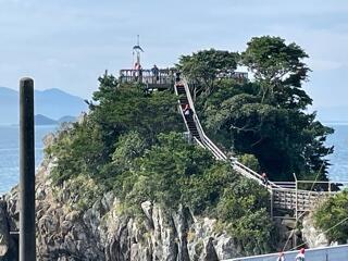 敷地内にある願いが叶う鐘を目指す子どもたち。