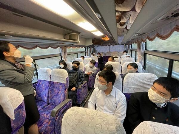 バスの中では、ガイドさんによる案内や早口言葉に挑戦し景品をもらうなど、楽しい時間を過ごしています。ちなみに、早口言葉のお題は「バスガス爆発」を3回言う…でした。