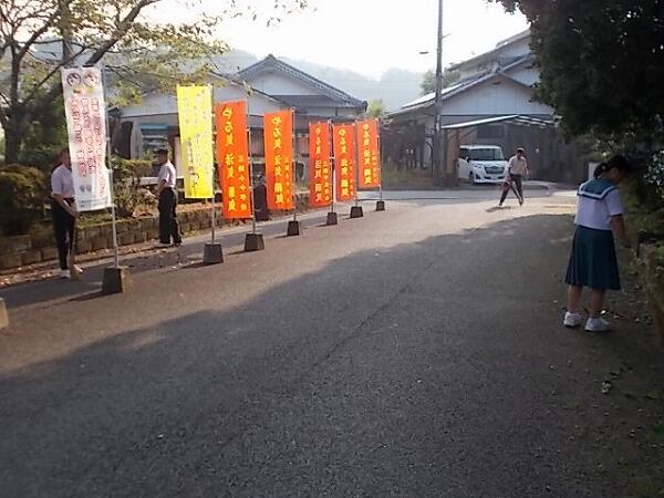 今朝の登校の様子です。小学生は距離をとりながらの登校を意識していました。傘を差すのも距離はとれることと日よけにもなることで一石二鳥のようです!!