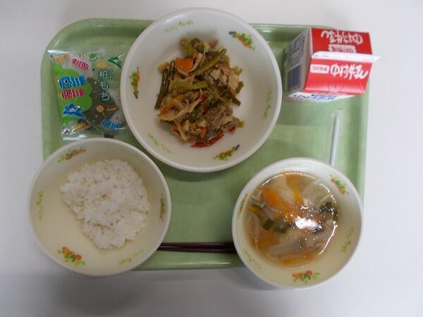 小学部の献立は「麦ご飯、ワンタンスープ、チンジャオロースー」でした。