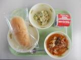 小中学部同じ献立で「りんごパン、ラタトゥイユ、マカロニサラダ」でした。