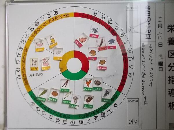 小学部の献立は「麦ご飯、さんぺいじる、鶏肉のちゃんちゃん焼き、ひじきのり」でした。