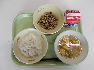 今日の献立は「白ごはん お野菜のつみれ汁 高菜そぼろ丼」でした。