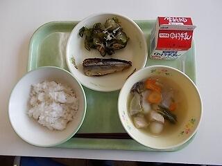 今日の献立は「麦ごはん 白玉団子汁 さんま甘露煮 梅かつお和え」でした。