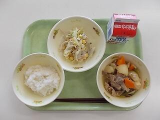 本日の献立は「白ごはん 塩肉じゃが ごまマヨ和え」でした。