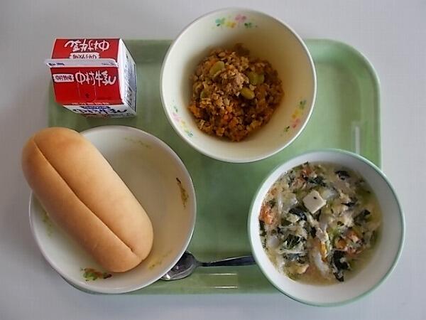 小中学部同じ献立で「ドッグパン、ドライカレー、卵スープ」でした。