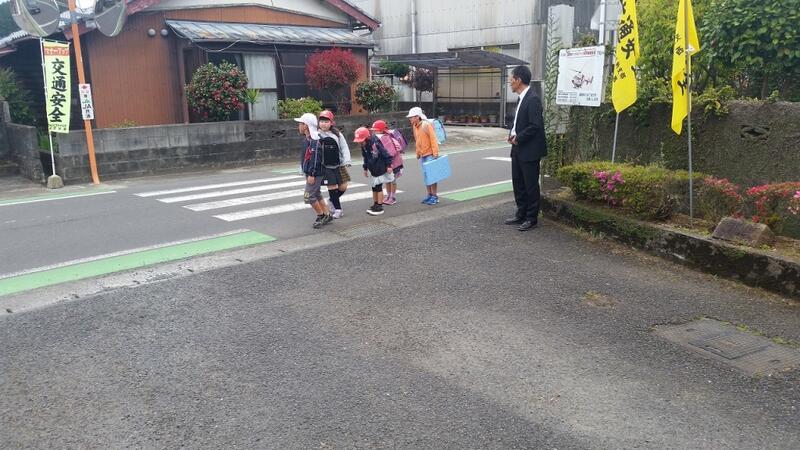 今朝も元気に登校しています。横断報道もきちんと手を挙げて左右確認もしっかりできています。