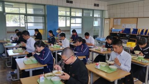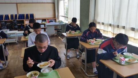 中学部は「麦御飯、鮭団子汁、きんぴらごぼう」です。