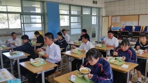 中学部は「麦御飯、中華卵スープ、バンバンジー、ヨーグルト」です。